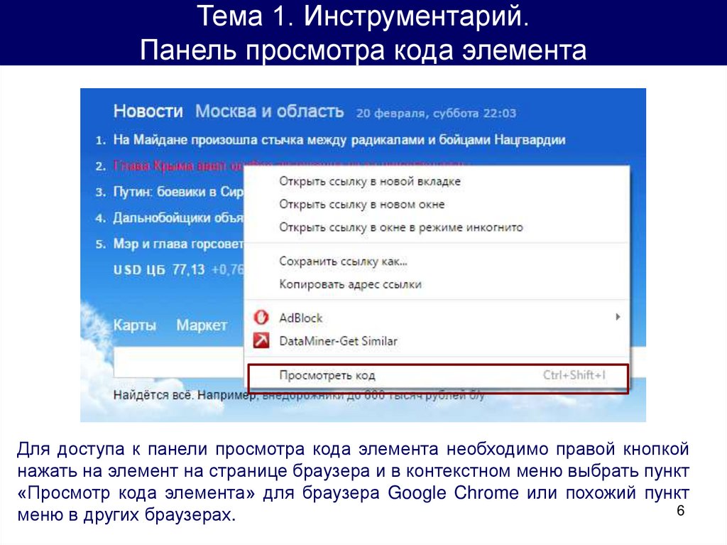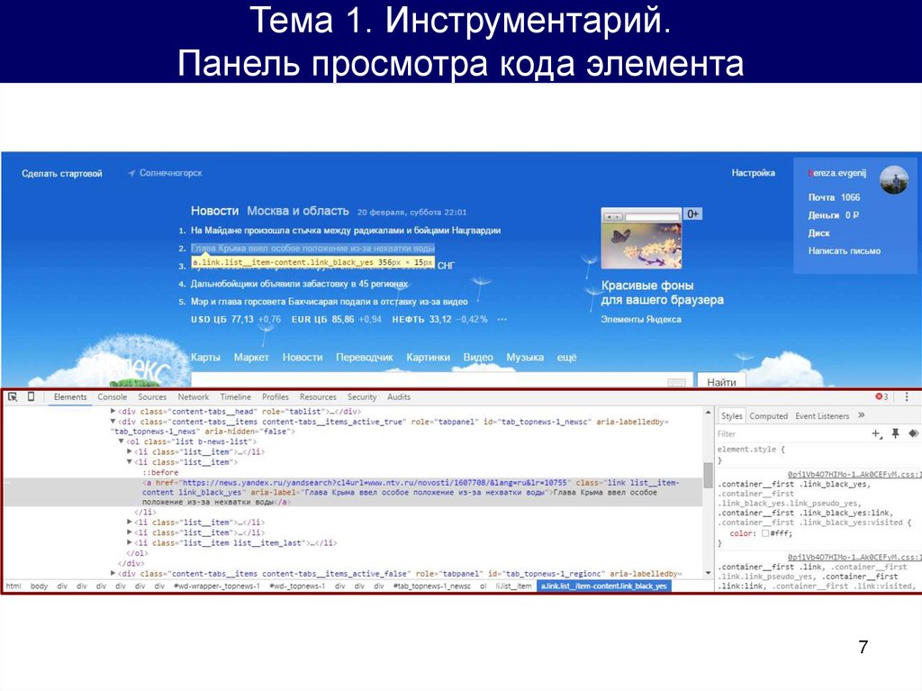 Тема 1. Инструментарий.Панель просмотра кода элемента