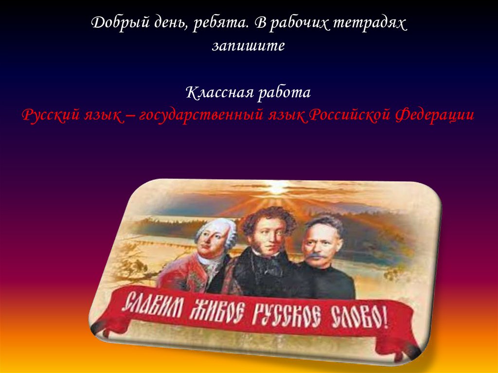 1. Добрый день, ребята. В рабочих тетрадях запишите Классная работа
