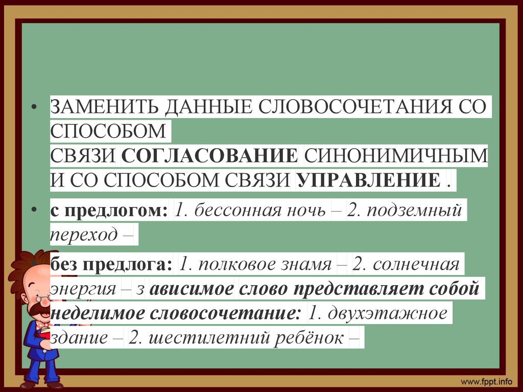 • ЗАМЕНИТЬ ДАННЫЕ СЛОВОСОЧЕТАНИЯ СОСПОСОБОМ