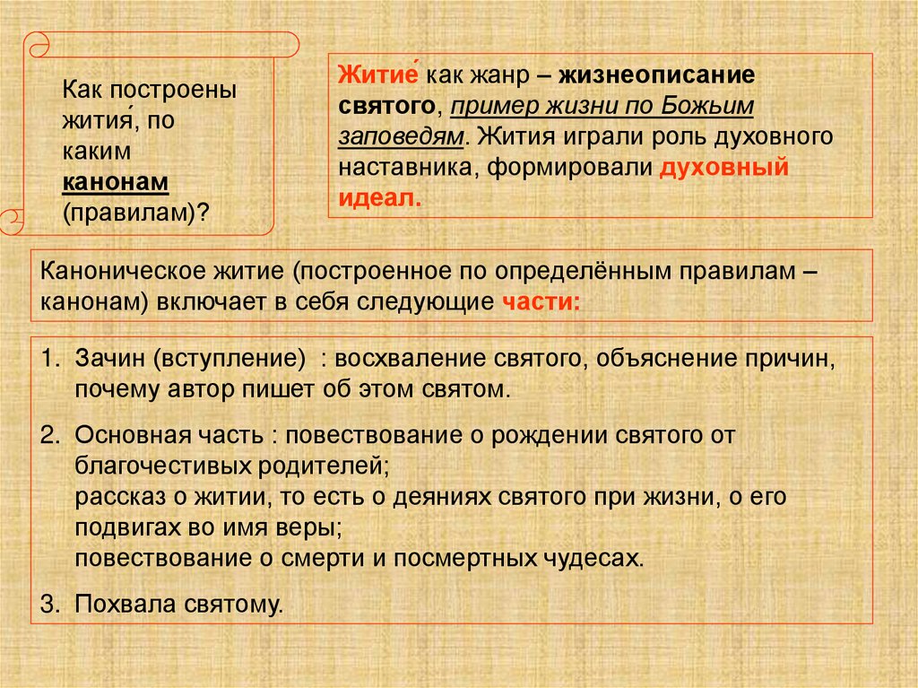 1. Зачин (вступление) : восхваление святого, объяснение причин,