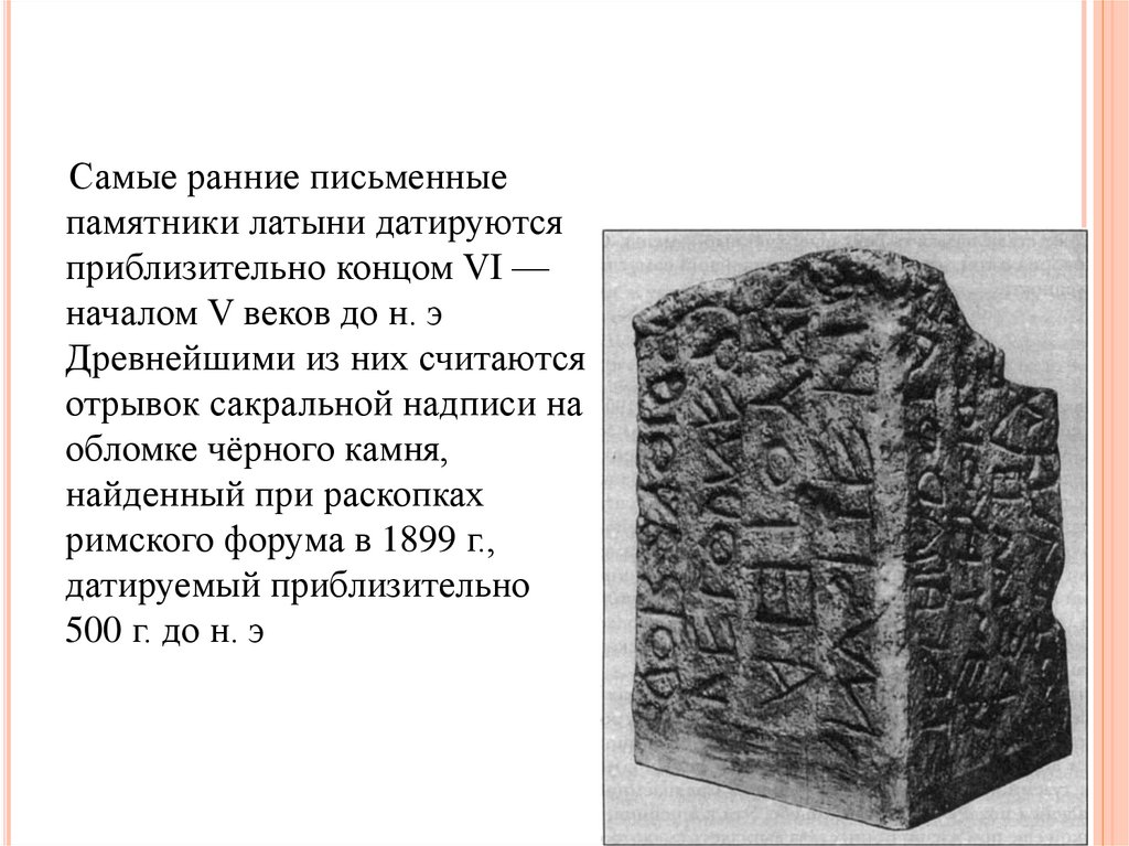 Самые ранние письменныепамятники латыни датируются