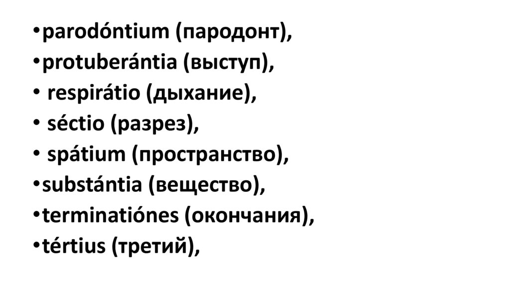 •parodóntium (пародонт),•protuberántia (выступ),
