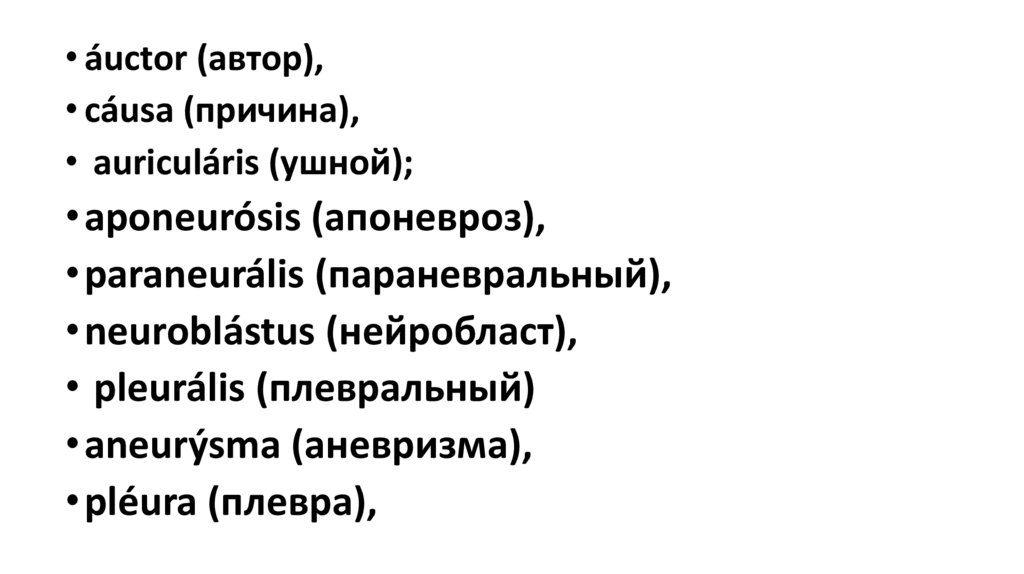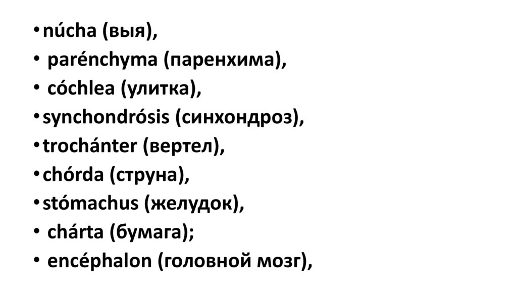 • núcha (выя),• parénchyma (паренхима),