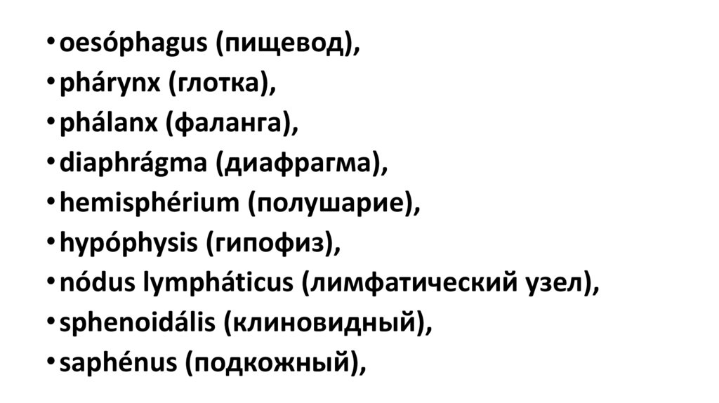 • oesóphagus (пищевод),• phárynx (глотка),