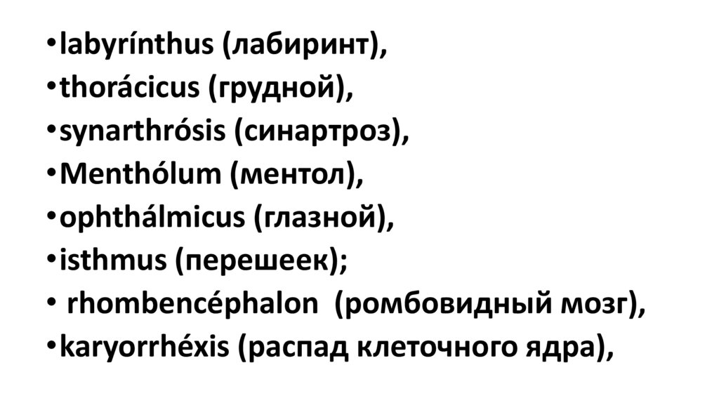 •labyrínthus (лабиринт),•thorácicus (грудной),