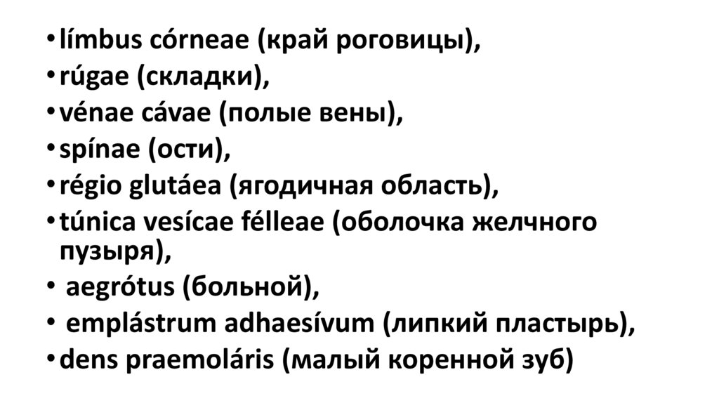 • límbus córneae (край роговицы),• rúgae (складки),
