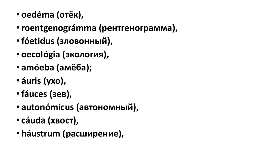 • oedéma (отёк),• roentgenográmma (рентгенограмма),