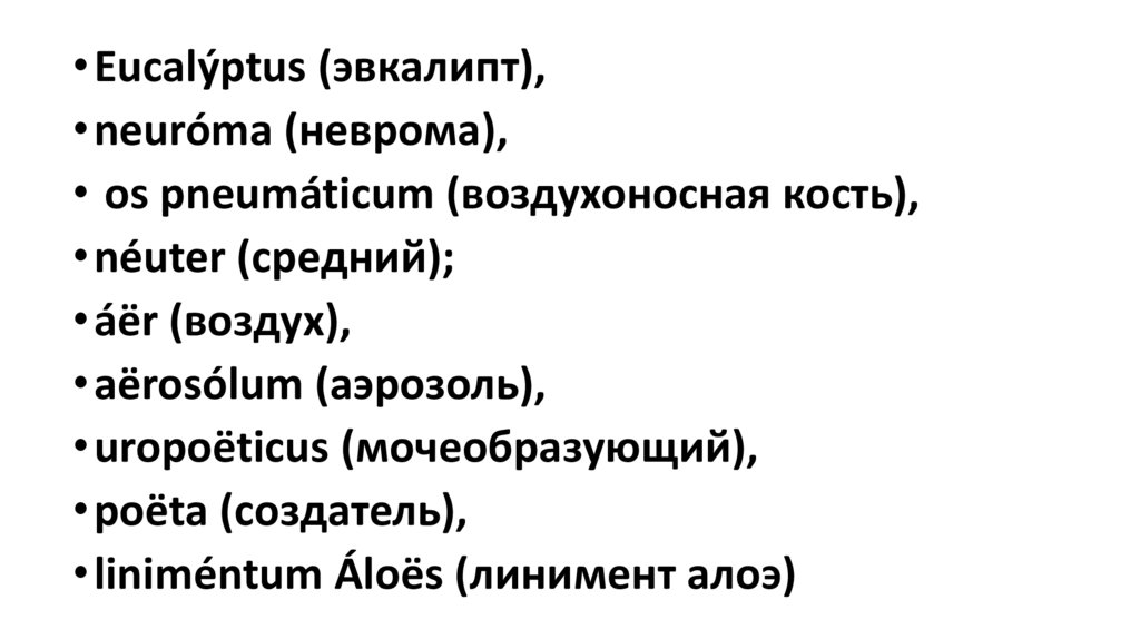• Eucalýptus (эвкалипт),• neuróma (неврома),