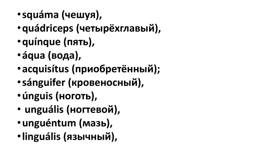 • squáma (чешуя),• quádriceps (четырёхглавый),