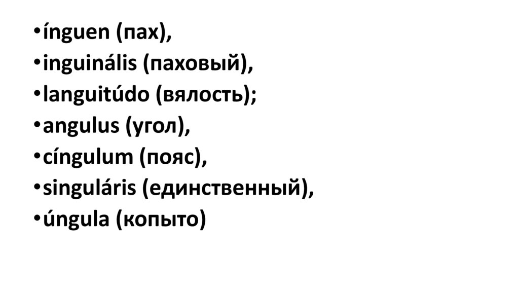 •ínguen (пах),•inguinális (паховый),