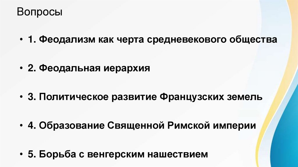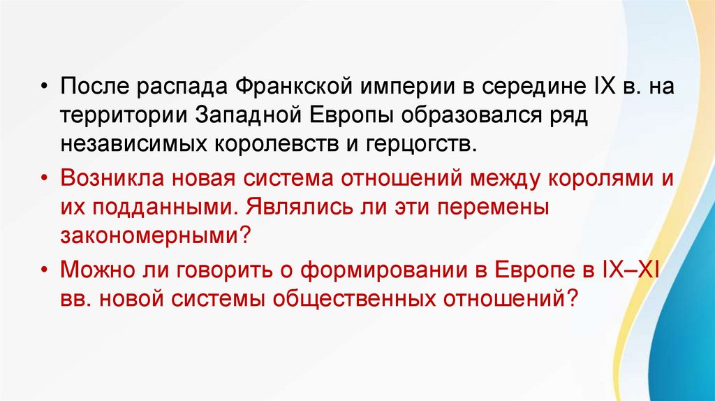• После распада Франкской империи в середине IX в. натерритории Западной Европы образовался ряд