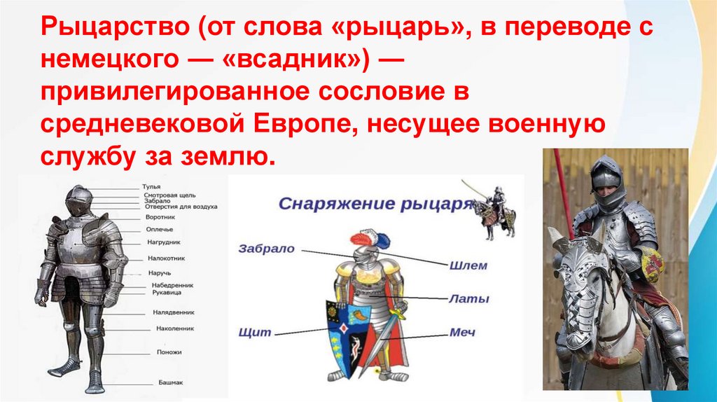 Рыцарство (от слова «рыцарь», в переводе снемецкого ― «всадник») ―
