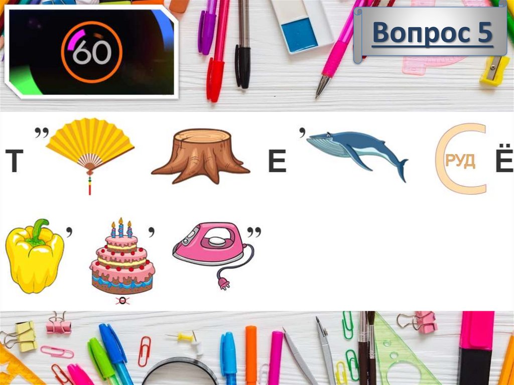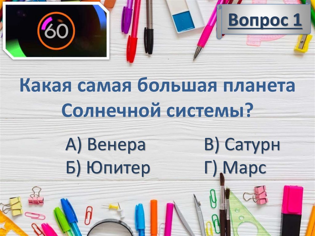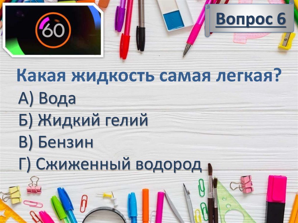61. 5 вопросов без вариантов ответов На обсуждение даётся 60 секунд Правильный ответ – 2 балл