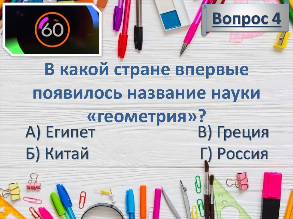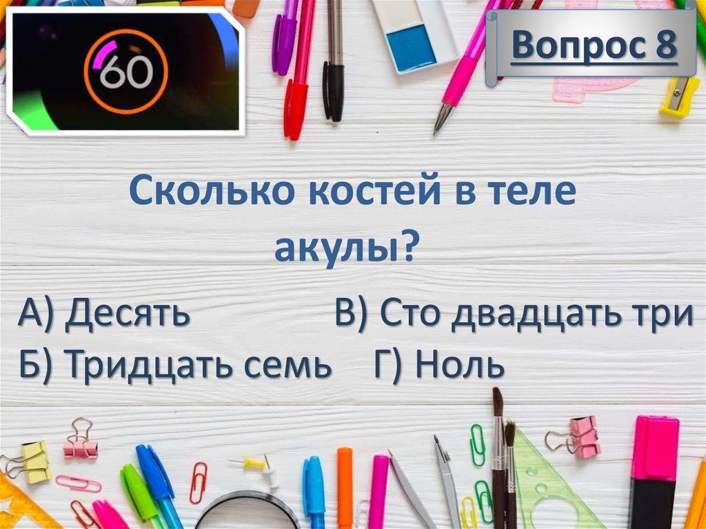 9. 8 вопросов 4 варианта ответов На обсуждение даётся 60 секунд Правильный ответ – 1 балл