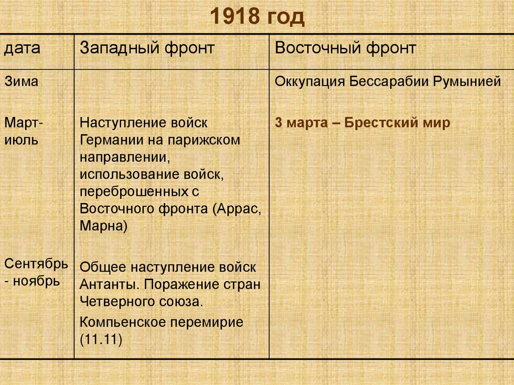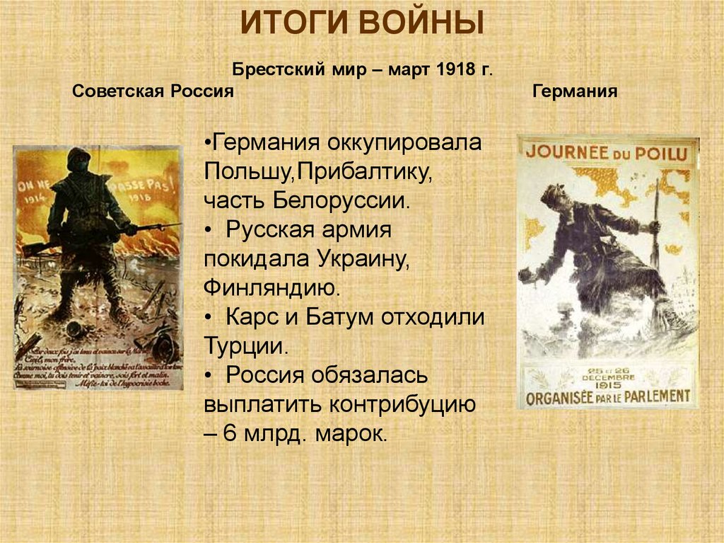 ИТОГИ ВОЙНЫБрестский мир – март 1918 г.