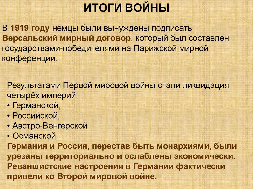 ИТОГИ ВОЙНЫВ 1919 году немцы были вынуждены подписать