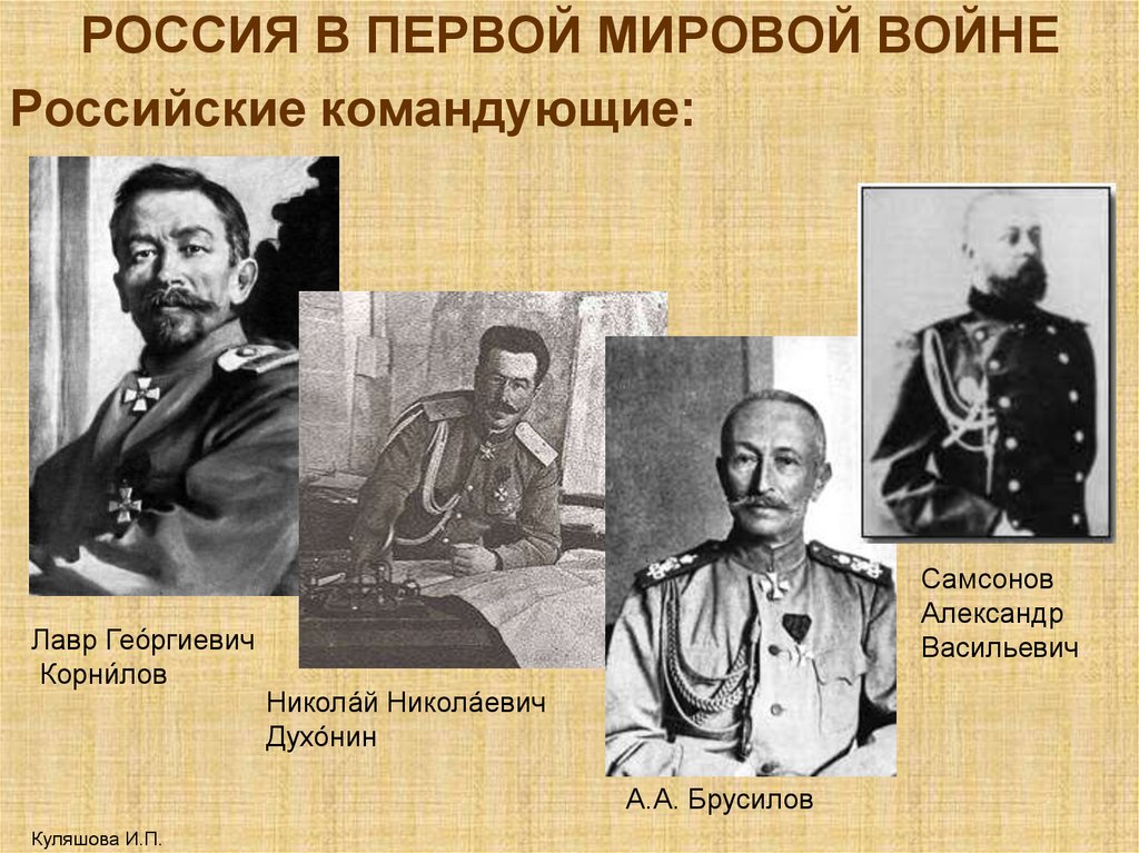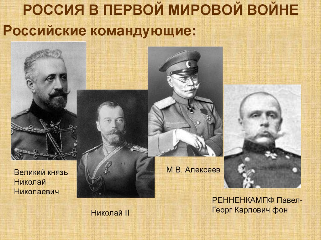 РОССИЯ В ПЕРВОЙ МИРОВОЙ ВОЙНЕРоссийские командующие: