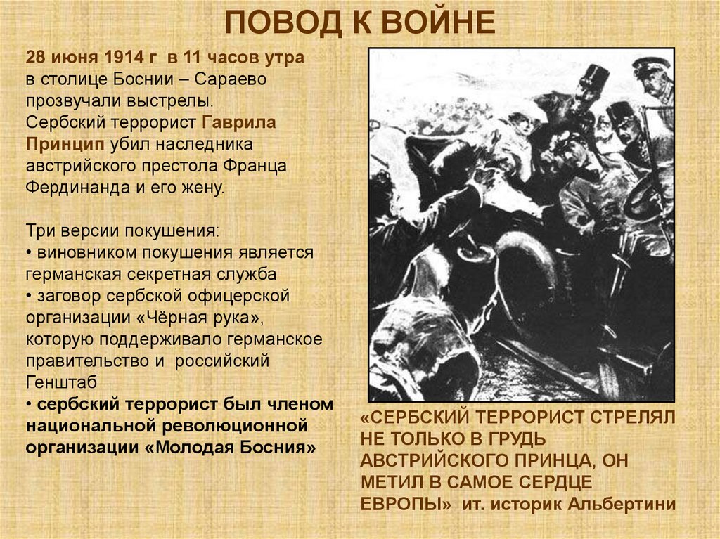 ПОВОД К ВОЙНЕ28 июня 1914 г в 11 часов утра