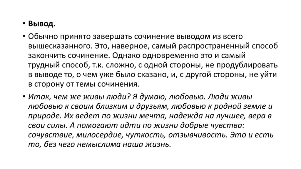 • Микpoвывoд (oбoбщeниe нaписaннoгo)