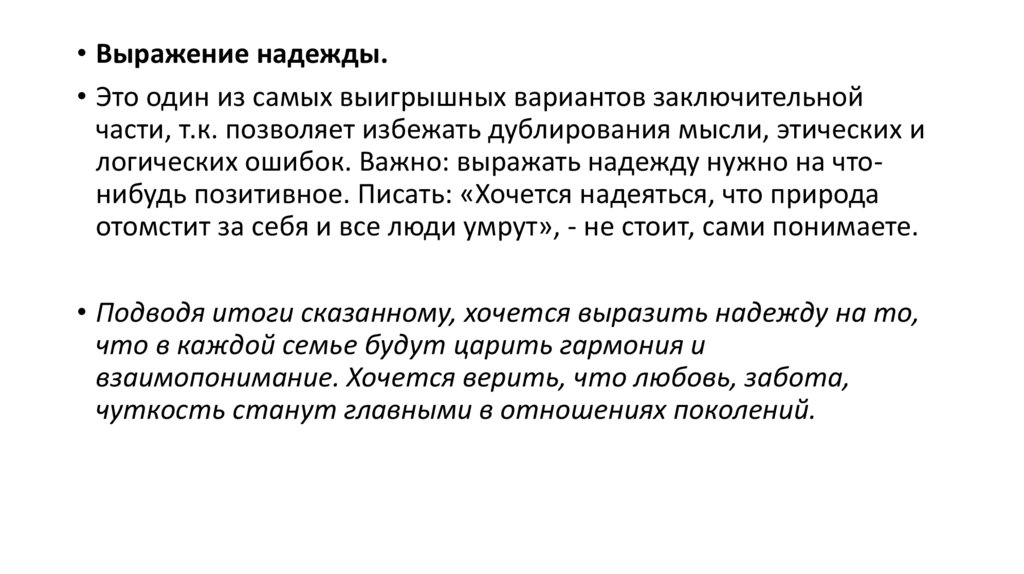 • Подводя итоги сказанному, хочется выразить надежду на то,