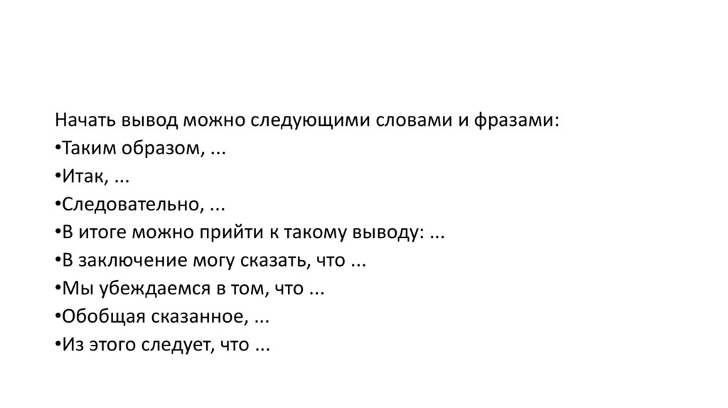 Начать вывод можно следующими словами и фразами:•Таким образом, ...