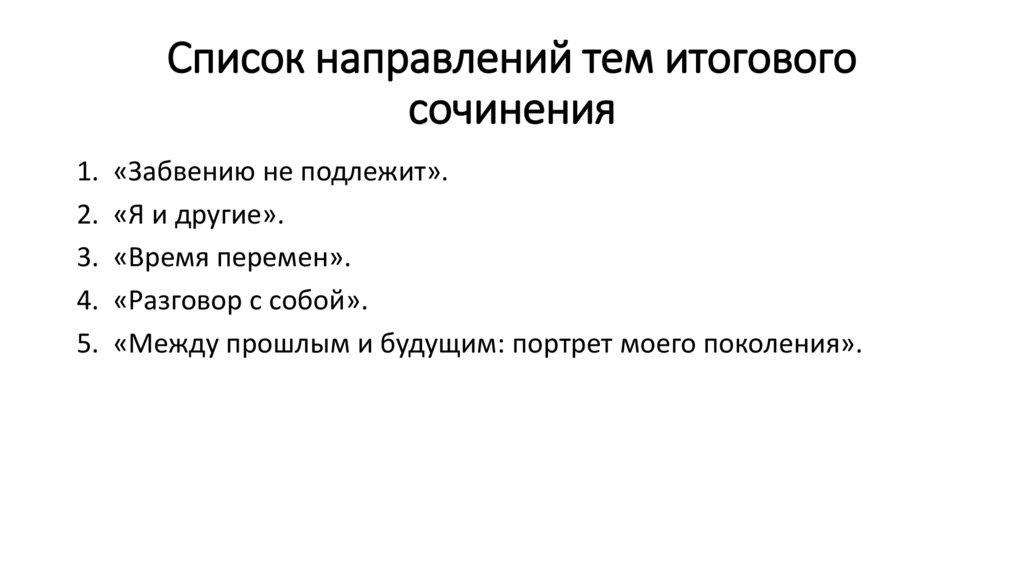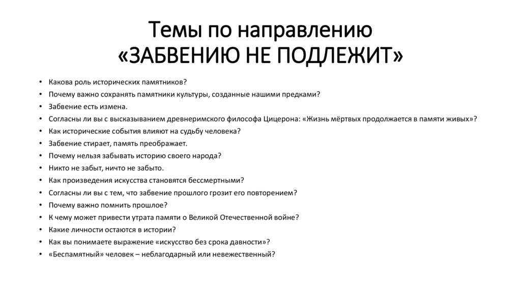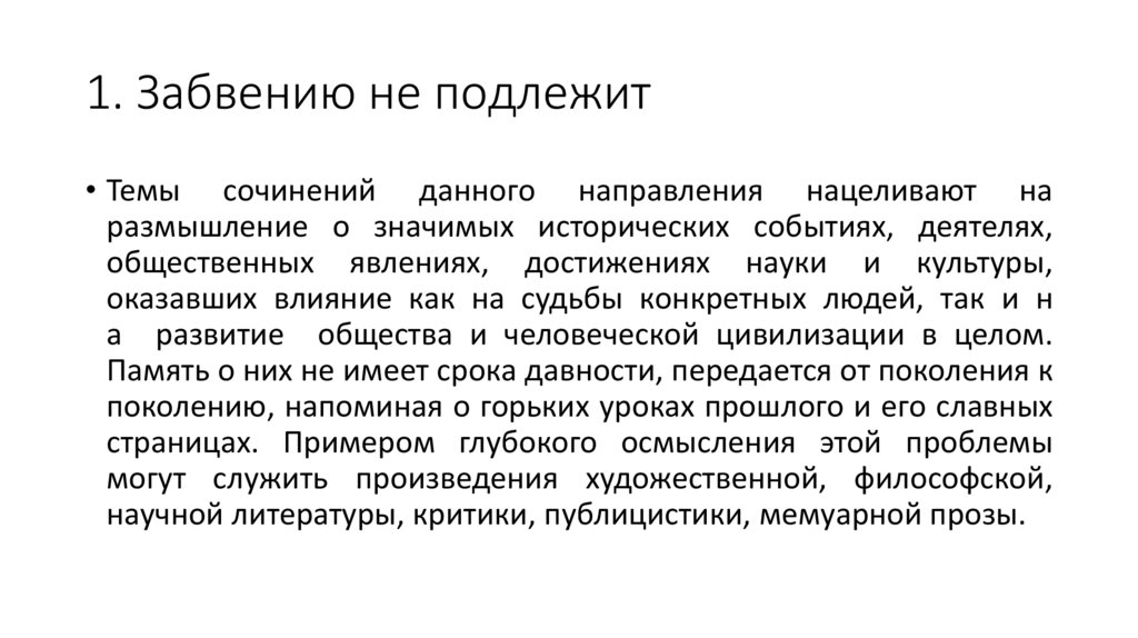 1. Забвению не подлежит• Темы сочинений данного направления нацеливают на