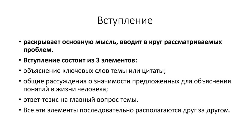Вступление• раскрывает основную мысль, вводит в круг рассматриваемых