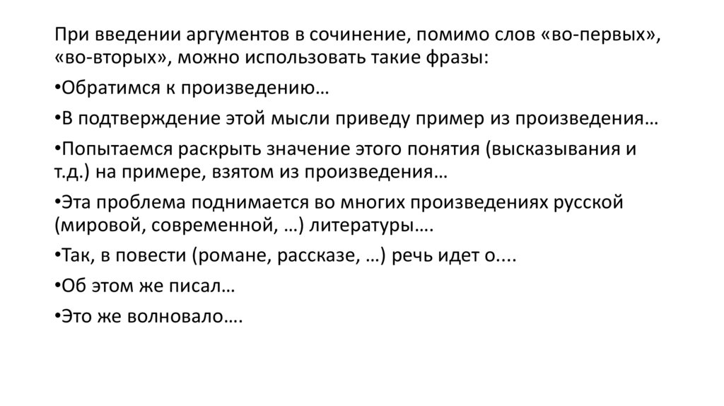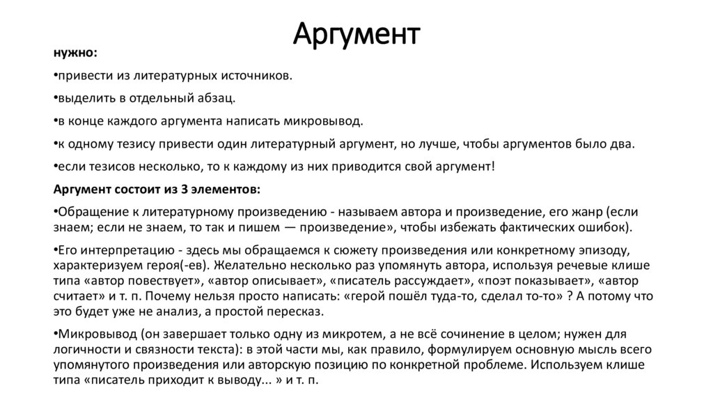 • Оптимaльнoe кoличeствo литературных аргументов – 2.