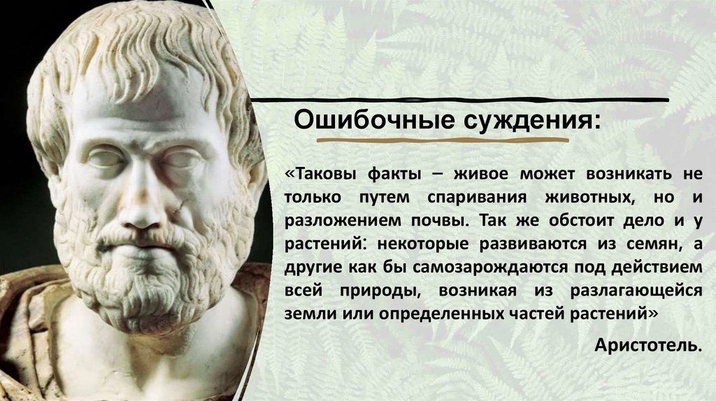 Ошибочные суждения:«Таковы факты – живое может возникать не