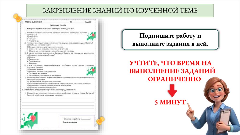 ЗАКРЕПЛЕНИЕ ЗНАНИЙ ПО ИЗУЧЕННОЙ ТЕМЕПодпишите работу и