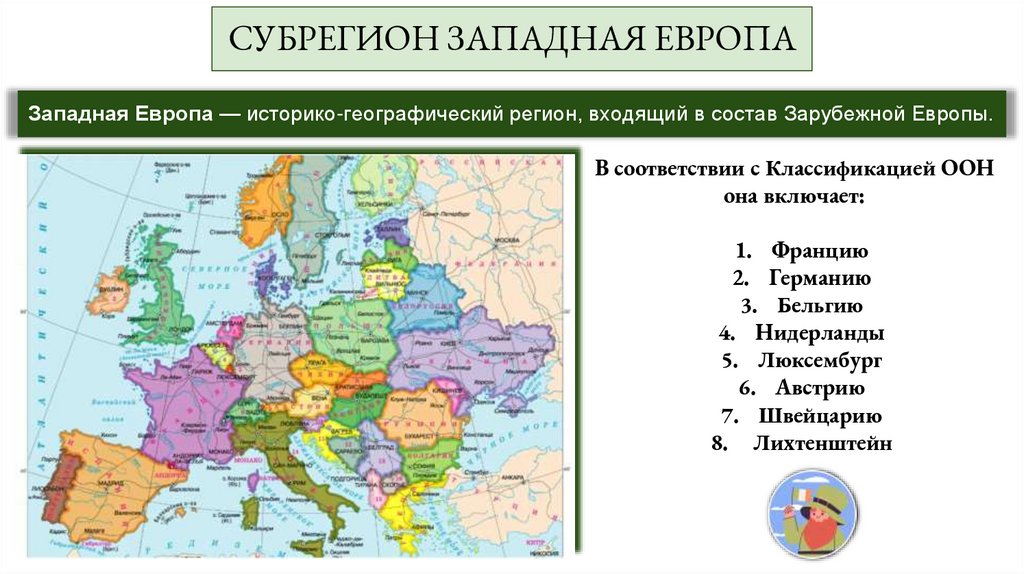 СУБРЕГИОН ЗАПАДНАЯ ЕВРОПАЗападная Европа — историко-географический регион, входящий в состав Зарубежной Европы.