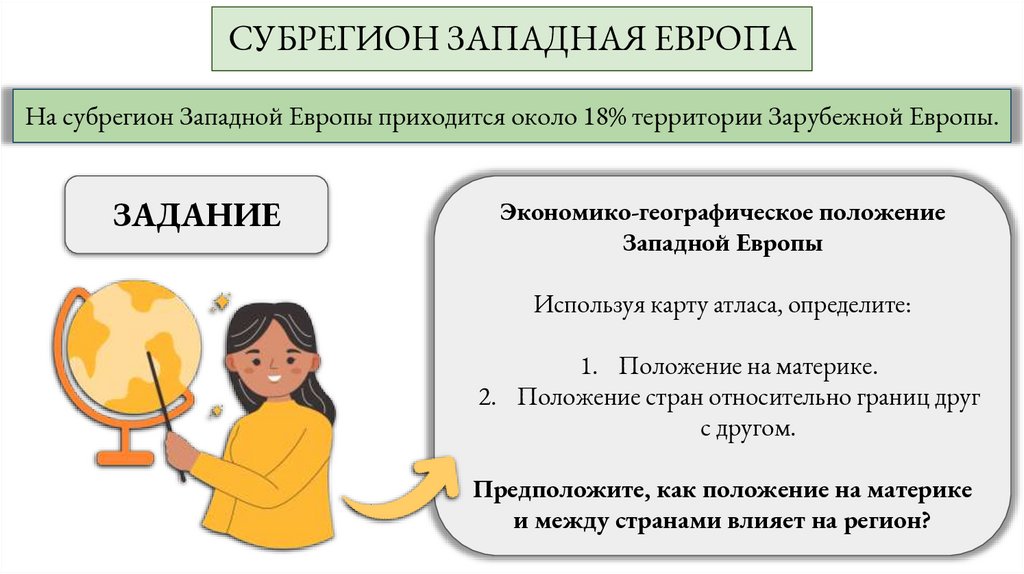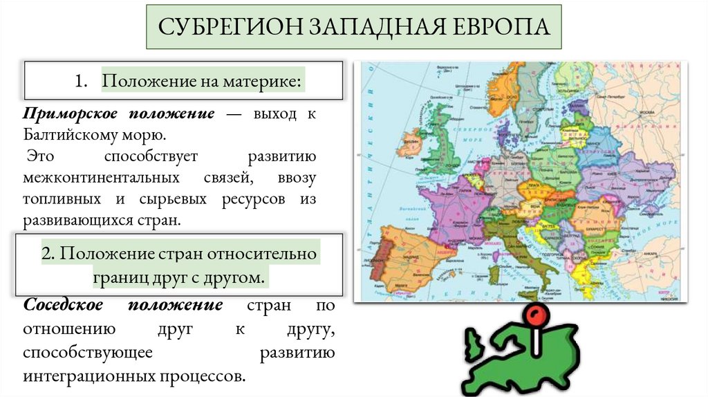 СУБРЕГИОН ЗАПАДНАЯ ЕВРОПА1. Положение на материке:
