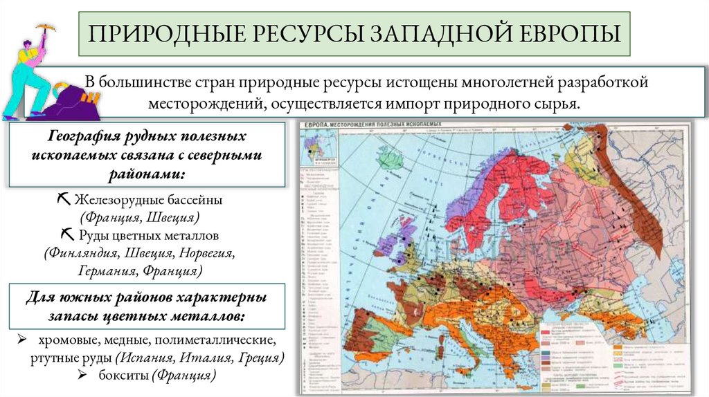 ПРИРОДНЫЕ РЕСУРСЫ ЗАПАДНОЙ ЕВРОПЫВ большинстве стран природные ресурсы истощены многолетней разработкой