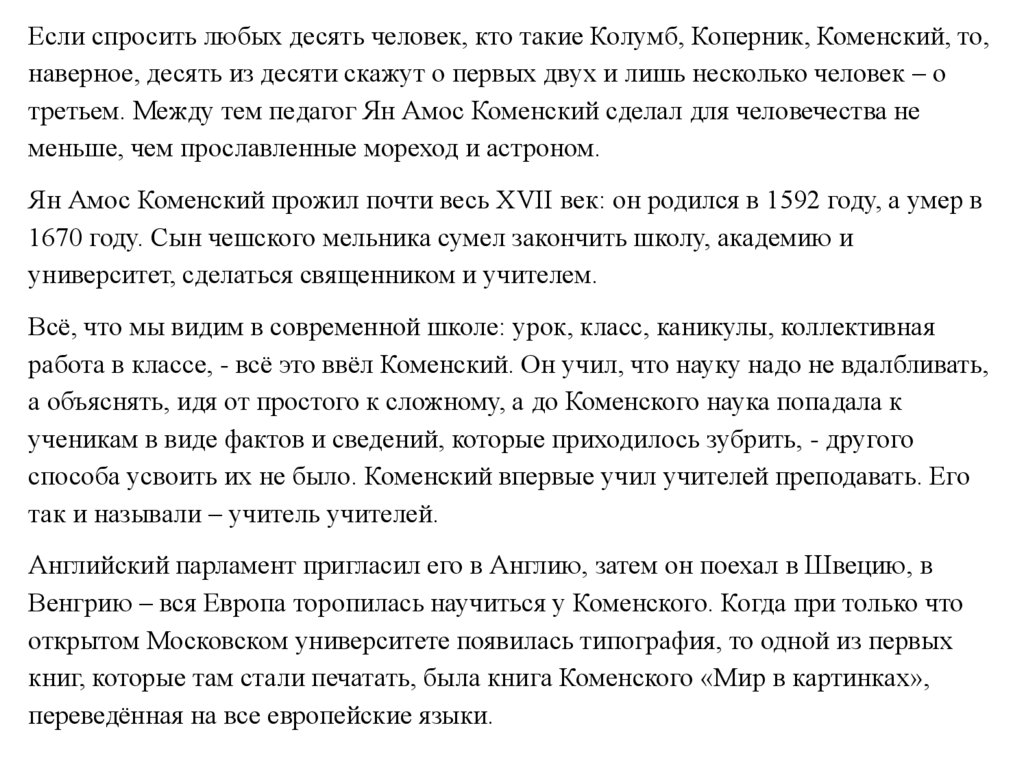 третьем. Между тем педагог Ян Амос Коменский сделал для человечества не