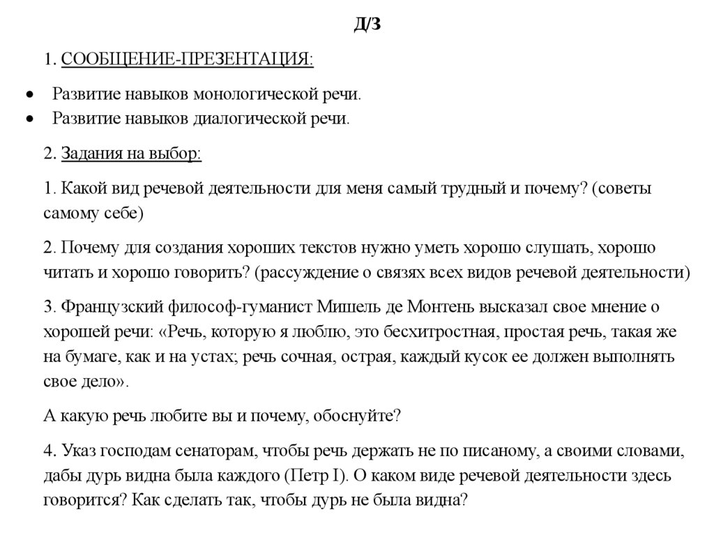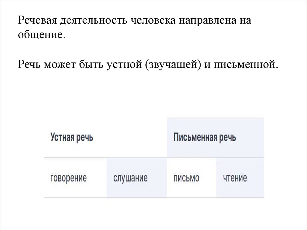 10. Виды речевой деятельности: чтение, аудирование, говорение, письмо