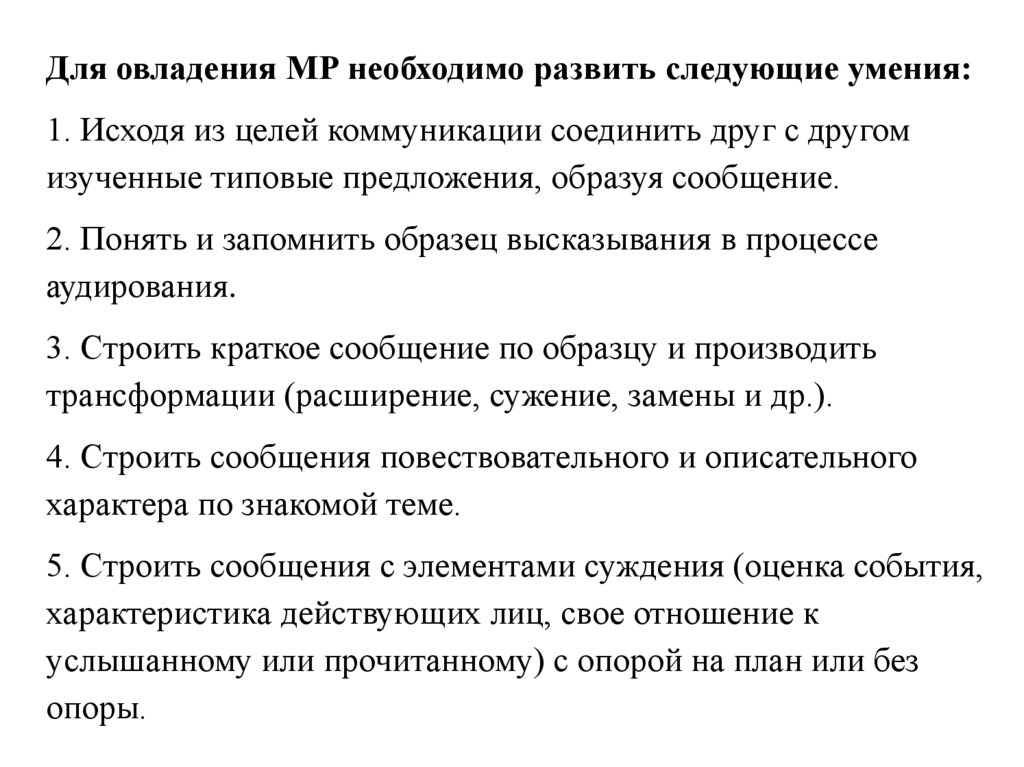 Для овладения МР необходимо развить следующие умения:1. Исходя из целей коммуникации соединить друг с другом