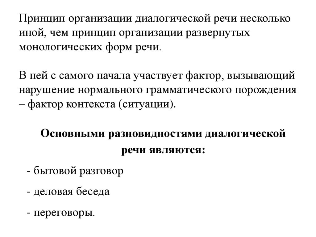 Принцип организации диалогической речи несколькоиной, чем принцип организации развернутых