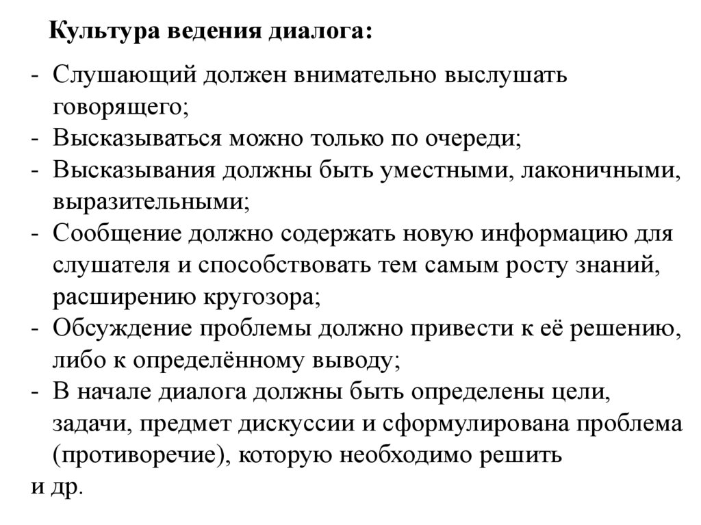 Культура ведения диалога:- Слушающий должен внимательно выслушать