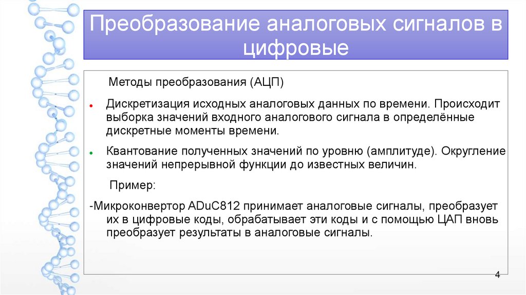 Цифровые системы аналоговых сигналов-называется аналогоцифровым преобразованием (АЦП).