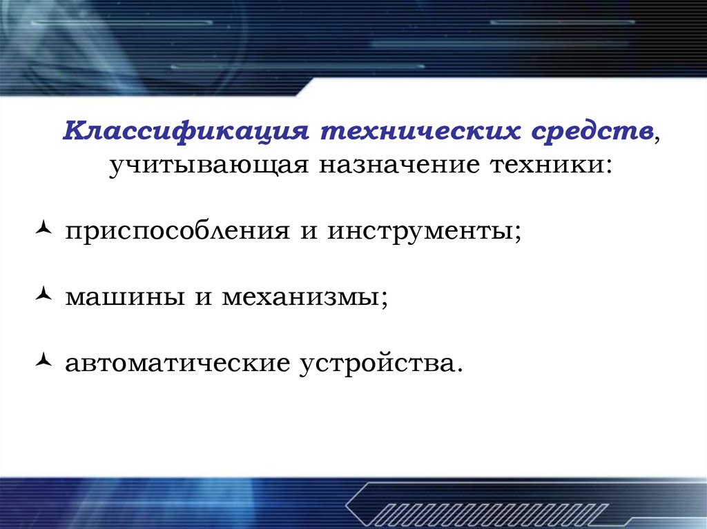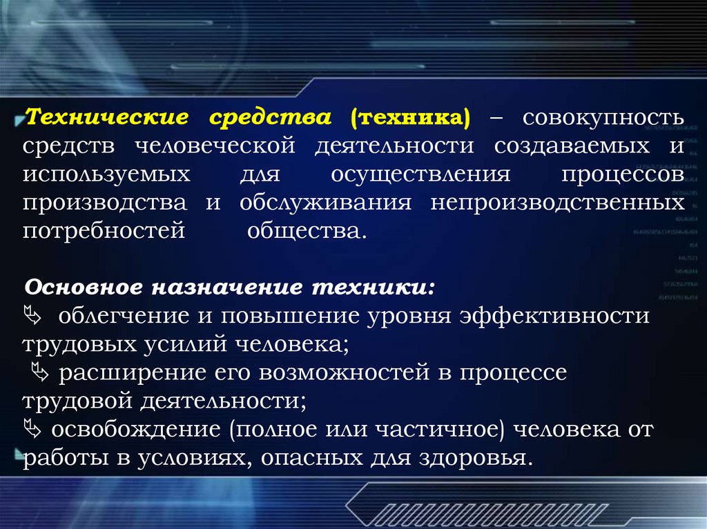 Технические средства (техника) – совокупностьсредств человеческой деятельности создаваемых и
