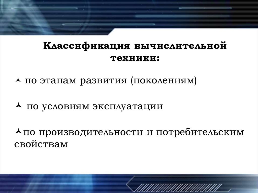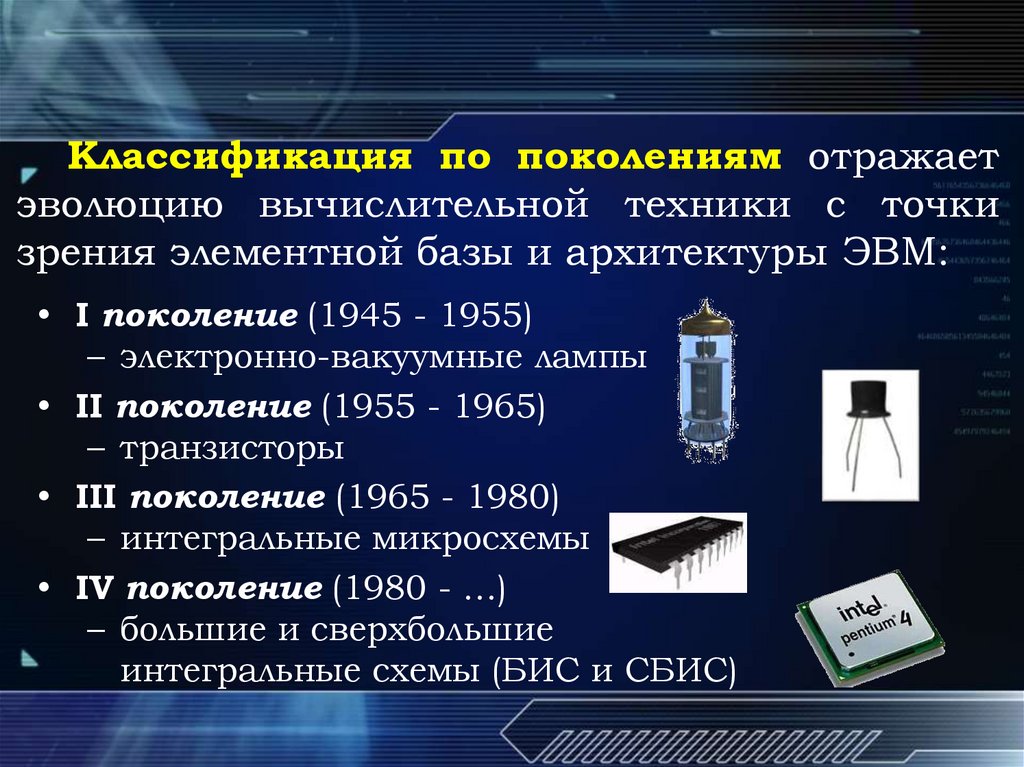 Классификация по поколениям отражаетэволюцию вычислительной техники с точки
