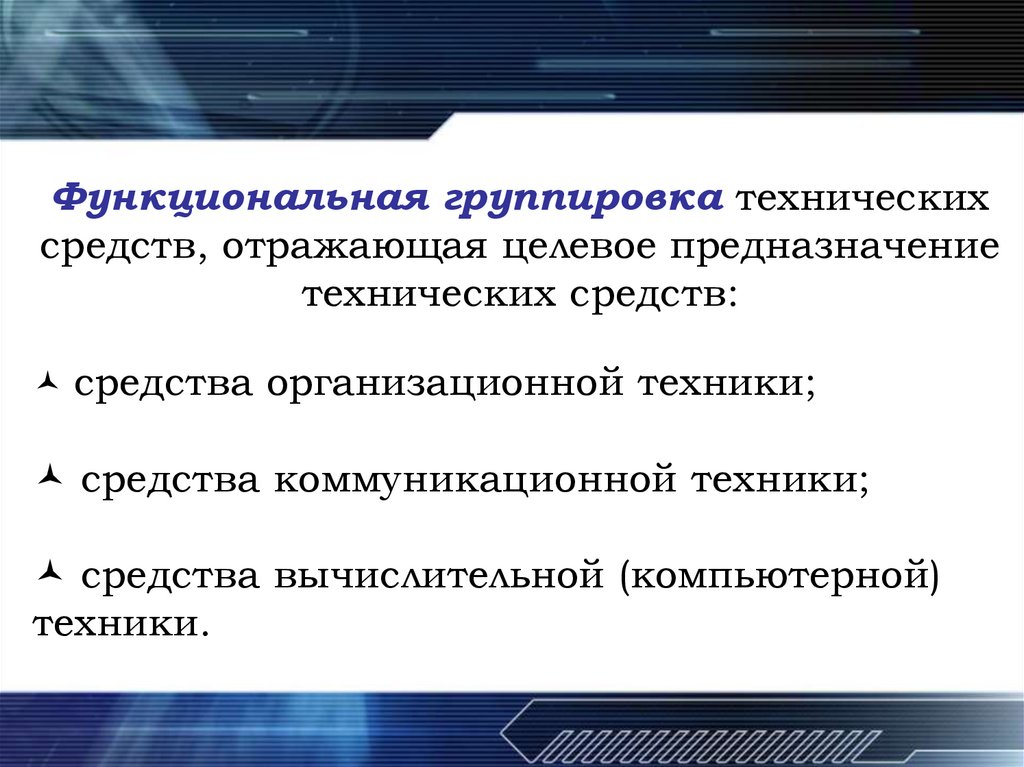 Функциональная группировка техническихсредств, отражающая целевое предназначение