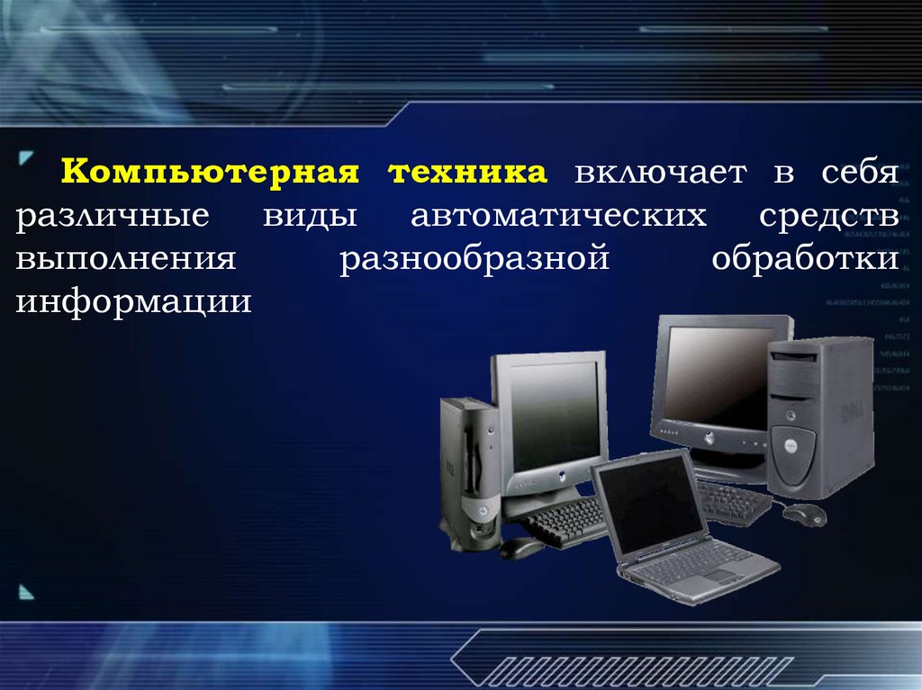 Компьютерная техника включает в себяразличные виды автоматических средств
