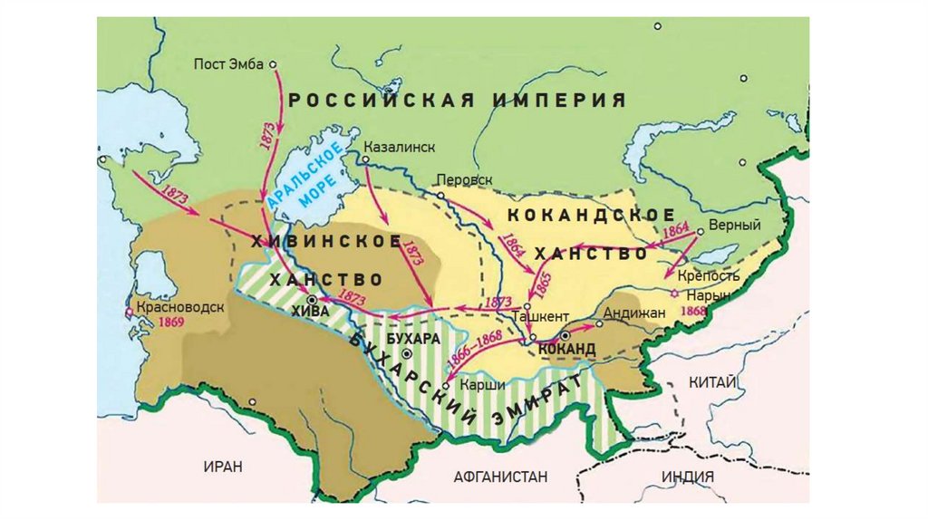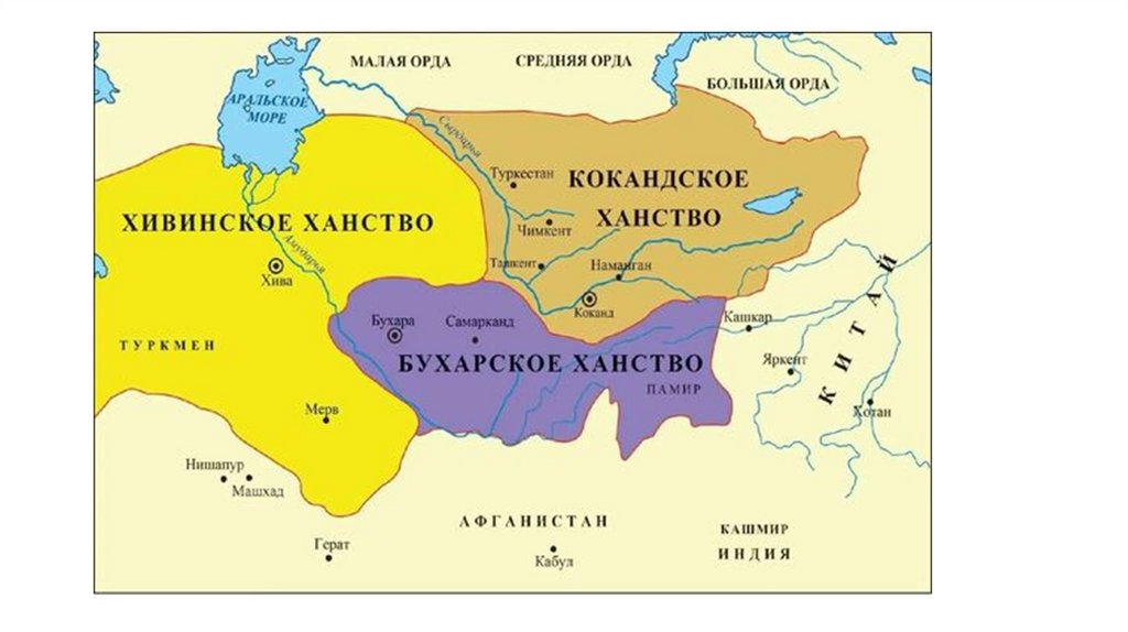 Границы Бухарского эмиратапростирались с юга до севера – начиная с