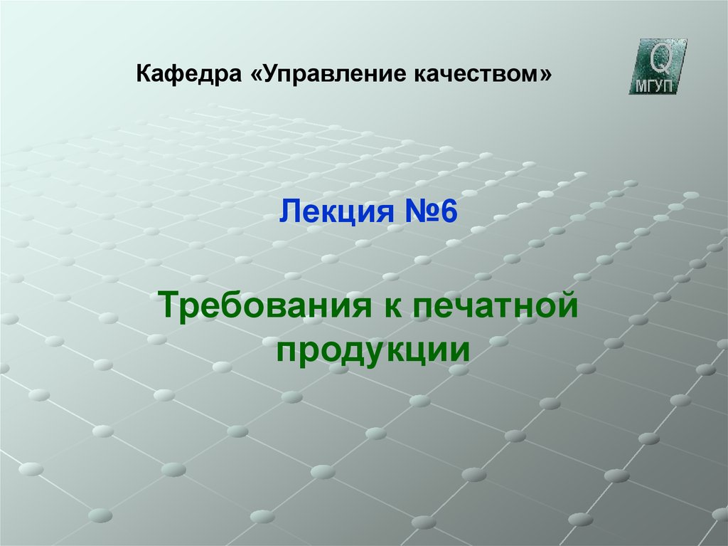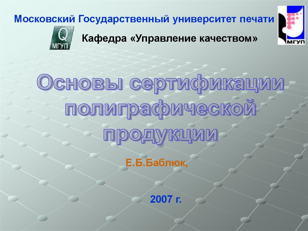 Московский Государственный университет печатиКафедра «Управление качеством»