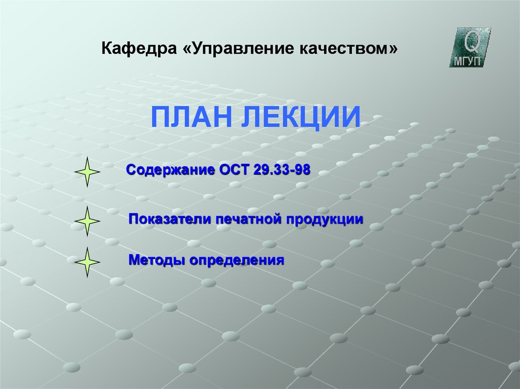Кафедра «Управление качеством»ПЛАН ЛЕКЦИИ