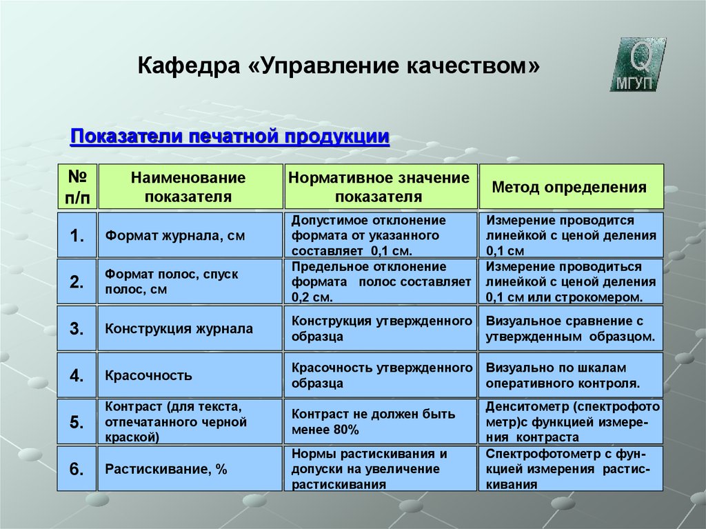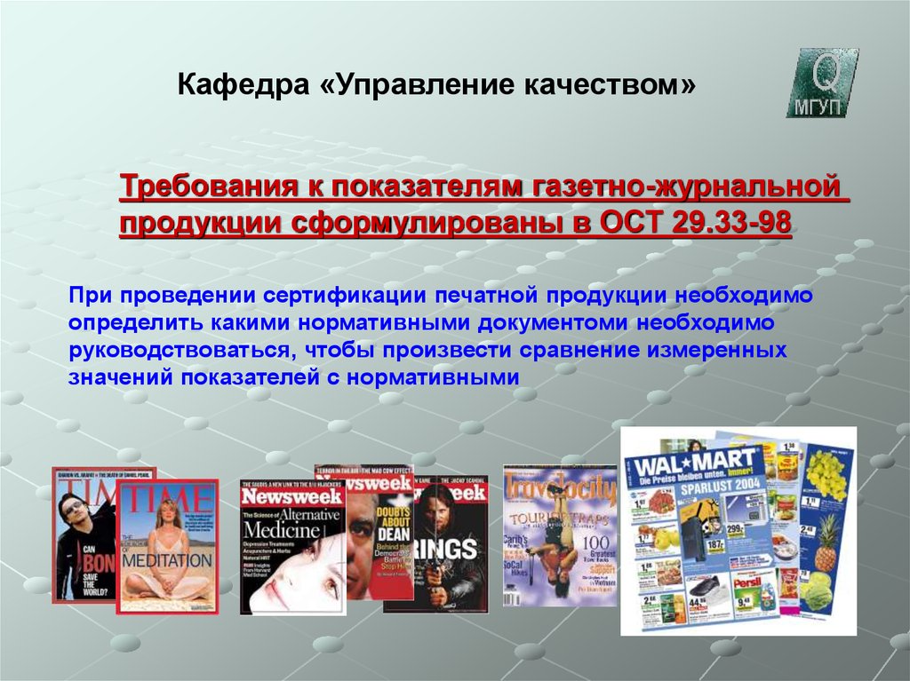 Кафедра «Управление качеством»Требования к показателям газетно-журнальной