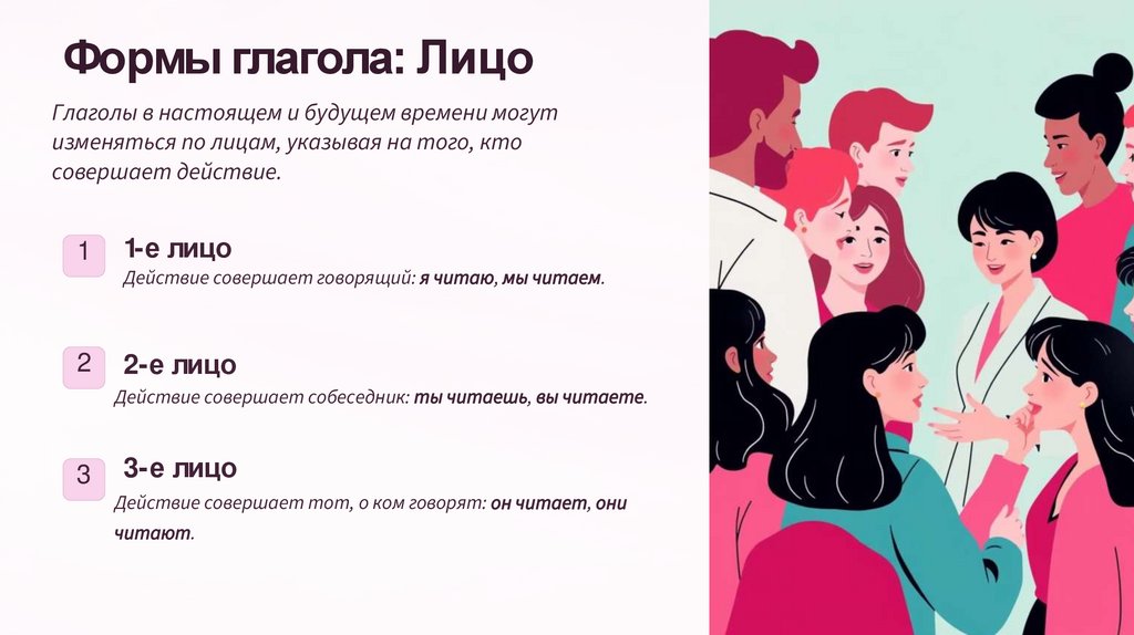 Формы глагола: ЛицоГлаголы в настоящем и будущем времени могут