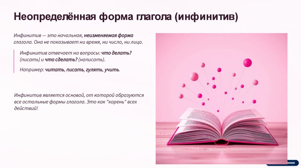 Неопределённая форма глагола (инфинитив)Инфинитив — это начальная, неизменяемая форма
