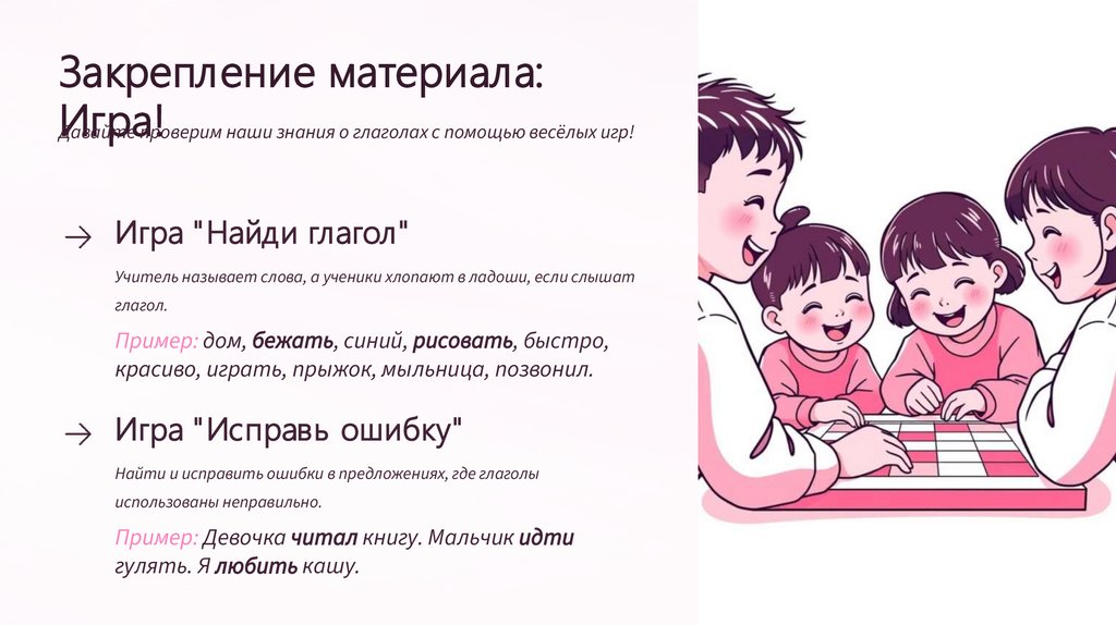 Давайте проверим наши знания о глаголах с помощью весёлых игр!